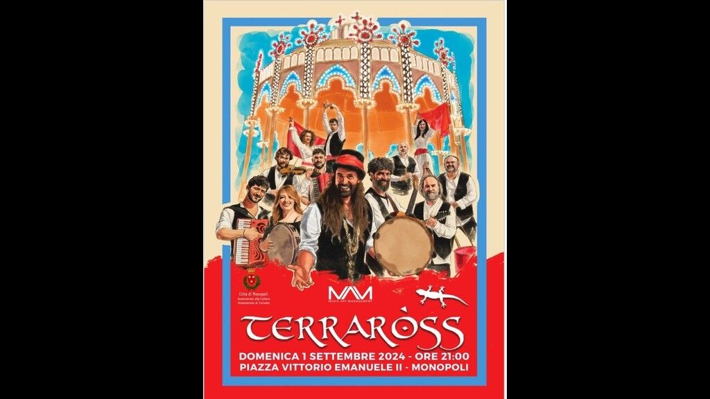 Sempre domani domenica primo settembre, a cura degli assessorati alla cultura e turismo, c’è l’appuntamento in piazza Vittorio Emanuele con la musica popolare dei “Terraross”, alle ore 21.00.