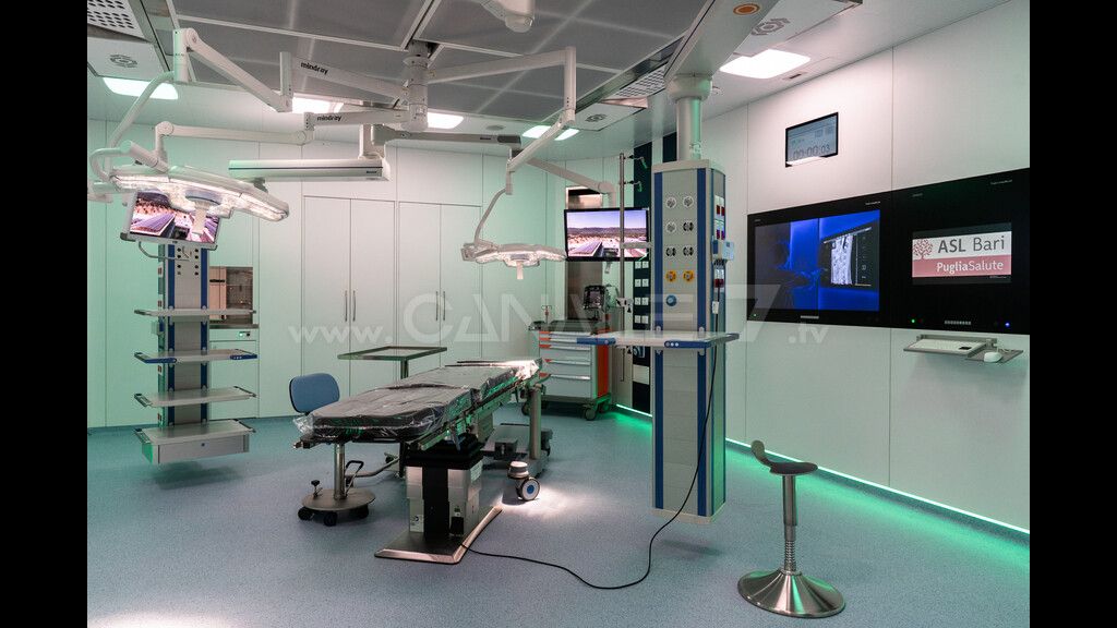 La pregevole architettura sanitaria è infine ulteriormente valorizzata dalla creatività degli artisti vincitori del Concorso internazionale ”Arte e Sanità Puglia 2023 - L’importanza dell’arte contemporanea nel processo di cura”, finalizzato alla realizzazione di opere d’arte destinate all’abbellimento dell’edificio ospedaliero, così come previsto dalle disposizioni della legge n. 717 del 1949. All’esterno, è prevista una enorme scultura di acciaio, alta sino a dieci metri, mentre all’interno dell’ospedale faranno bella mostra di sé i grandi pannelli decorativi esposti lungo i 60 metri del perimetro della hall e nove tele collocate negli spazi di attesa e di passaggio. Nel telegiornale un servizio (D.D.)
