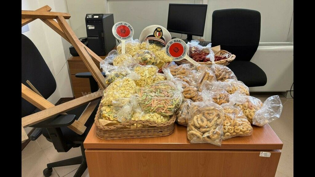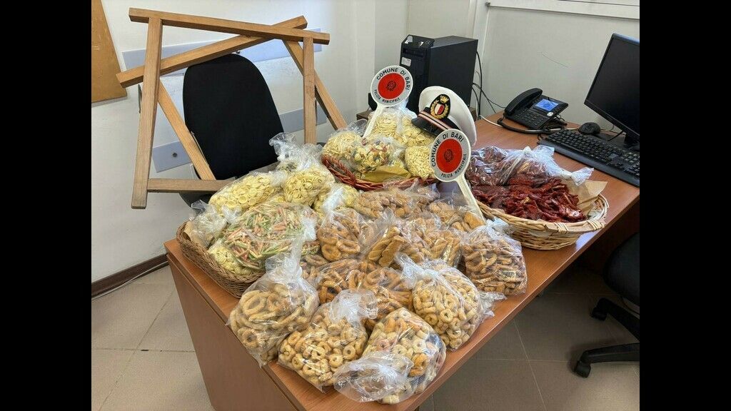 BARI - Continuano i controlli della Polizia Locale a Bari Vecchia, per contrastare l’abusivismo commerciale. Nel corso delle verifiche effettuate oggi pomeriggio, martedì 26 agosto, le pattuglie del nucleo Annona e Polizia giudiziaria hanno sequestrato in Strada Arco Alto circa quaranta chili di merce, tra cui pomodori secchi, pasta secca, taralli contenuti in confezioni prive di etichette. Il sequestro ha riguardato, nel dettaglio, dodici confezioni di taralli salati e sette di taralli dolci, ventitré di pasta secca (orecchiette e altri formati) e una cesta di pomodori secchi. Sequestrati, inoltre, i cavalletti e le basi su cui era esposta la merce.