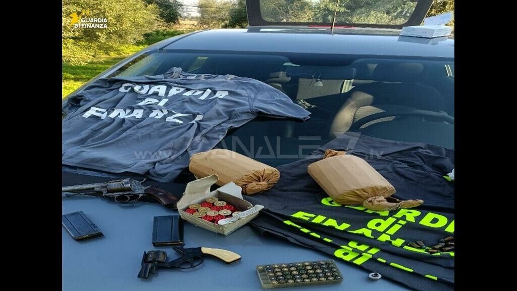 TRANI - Nel corso della quotidiana attività finalizzata ad assicurare il costante controllo economico del territorio lungo l’intera direttrice adriatica rientrante nell’area di competenza (provincie di Bari e Barletta-Andria-Trani), l’attenzione dei militari del Gruppo Pronto Impiego Bari è stata richiamata da un complesso immobiliare, con ogni probabilità destinato a residenza estiva, nell’agro di Trani protetto, lungo i muri perimetrali, da un sofisticato sistema di videosorveglianza. Gli approfondimenti sviluppati a posteriori hanno dato conferma che il complesso immobiliare individuato, costituito da diverse pertinenze, oltre che da un corpo centrale, è risultato riconducibile ad alcuni noti pregiudicati locali, in un recente passato coinvolti in fatti di cronaca giudiziaria legati a traffico di sostanze stupefacenti. Le successive attività di ricognizione aerea, condotte con l’ausilio della Sezione Aerea del Reparto Aeronavale della Guardia di Finanza di Bari, hanno consentito osservare l’esistenza di parti di auto depositate. Così i Baschi Verdi del Comando Provinciale di Bari hanno dato corso a una perquisizione locale all’esito della quale è stato possibile rinvenire, abilmente occultati all’interno di alcune strutture precarie insistenti sul suolo, diverse parti di autovetture riconducibili a una Fiat 500L, una Fiat 500 Abarth e una Peugeot 208 frutto di attività furtiva e pronte per essere destinate al mercato illegale della ricambistica auto. Inoltre, all’esito di ulteriori e più approfondite ricerche sono state rinvenute 2 pistole in buono stato di conservazione e numerose munizioni di vario calibro, oltre a 2 ordigni esplosivi di preparazione artigianale unitamente ad alcune casacche contraffatte, riportanti i segni distintivi della Guardia di finanza. Due persone sono state denunciate.