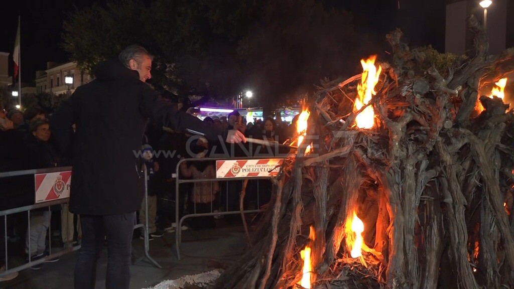 DA COMUNICATO - A partire dalle ore 19 in Piazza Vittorio Emanuele si terrà l’accensione del falò accompagnata dal gruppo folkloristico “Entinkàntaro” e dalla degustazione di spaghetti all’assassina, caciocavallo impiccato e panini. I falò saranno accesi anche in via Cavaliere e via Perrini.