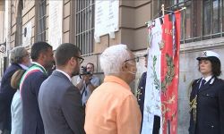 Deposta una corona di fiori sulla lapide posta sulla facciata di Palazzo di Città