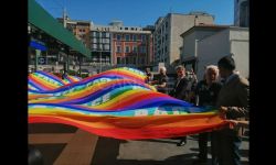 Stamattina a Bari flashmob con lunghe bandiere arcobaleno per la prima delle tappe del pellegrinaggio 'Live for Peace'. Il convoglio era partito da Taranto.