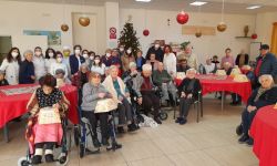 Scambio di auguri e dono di un panettone in vista delle festività natalizie.