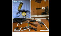 Nel locale gli agenti hanno rinvenuto due doppiette calibro 12, entrambe di provenienza furtiva e con canne mozze.