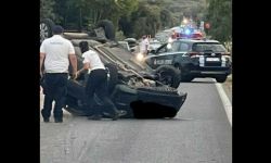 Il mezzo è uscito di strada restando in bilico sul terrapieno della complanare sottostante.