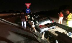 Una Mini Cooper si è incastrata tra i due guard rail, necessario l'intervento dei vigili del fuoco