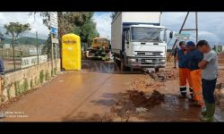 La forte pioggia caduta di fatto aperto la voragine e il pesante mezzo è rimasto bloccato.