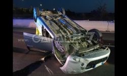 Un'auto condotta da un giovane è finita fuori strada ribaltandosi.
