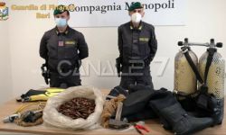 Le Fiamme Gialle di Monopoli hanno sequstato i mitili e l'attrezzatura, nonchè denunciato tre persone.