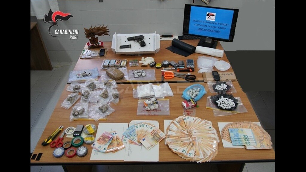 Nel contesto delle attività di controllo del territorio nel settore degli stupefacenti con continui servizi disposti dal Comando Provinciale dei Carabinieri nella città di Bari, i militari della Compagnia di Bari Centro hanno arrestato nella flagranza del reato di spaccio e detenzione di droga e detenzione di arma clandestina tre italiani, di cui due già noti alle forze di polizia.