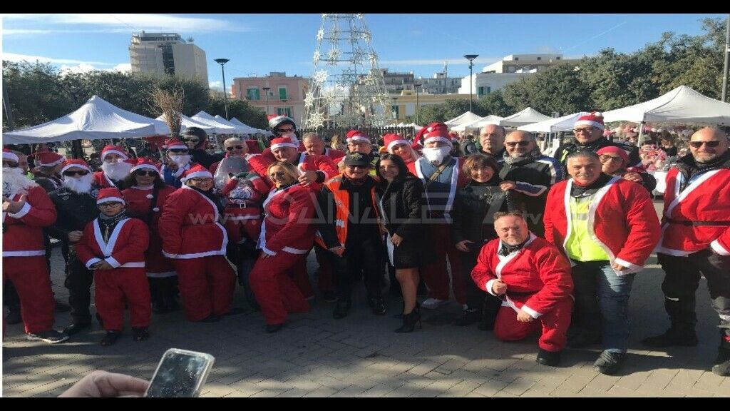 Testa insieme a tanti altri motociclisti in abiti da Babbo Natale sono giunti a