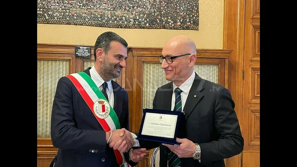 Comunicato - Questa mattina, lunedì 16 gennaio, a Palazzo di Città, il sindaco di Bari Antonio Decaro e il presidente della commissione comunale Cultura e Università Giuseppe Cascella hanno consegnato una targa di riconoscimento a Gaetano Scamarcio, professore ordinario di Fisica sperimentale presso l’Università di Bari, “per i contributi seminali riconosciuti dalla comunità scientifica internazionale all’invenzione e alla fisica di dispositivi quantistici applicati in ambito ambientale e bio-medicale”.