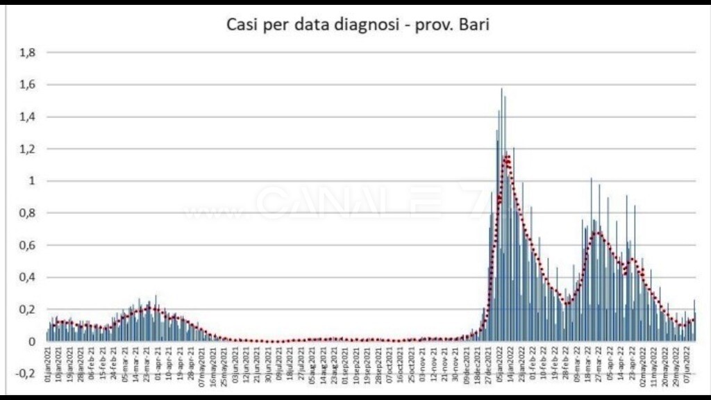 Scende di quasi un terzo, meno 30,3 per cento, il tasso d’incidenza settimanale. Nel periodo tra il 9 e il 15 gennaio, a conferma della tendenza in atto già dalla scorsa settimana, le nuove positività al Sars-cov 2 rilevate passano da 2.878 a 2.003 per un tasso di 162,8 casi (dal precedente 233,9) ogni 100mila abitanti: uno scenario omogeneo su tutto il territorio di Bari e provincia, dove in 37 comuni su 41 i contagi arretrano o restano invariati.