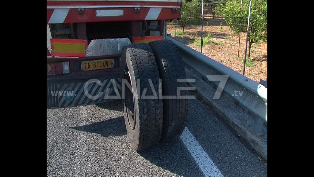 Incredibile la dinamica del sinistro: due ruote di un tir si staccano e centrano in pieno un'auto
