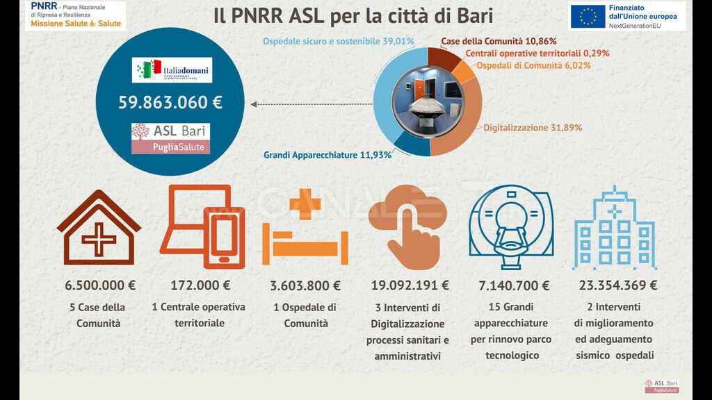 Il Piano della Asl prevede nel complesso fondi per 59.863.060 euro che serviranno per rendere le strutture più moderne, digitali e inclusive, garantire equità di accesso alle cure, rafforzare la prevenzione e i servizi sul territorio.