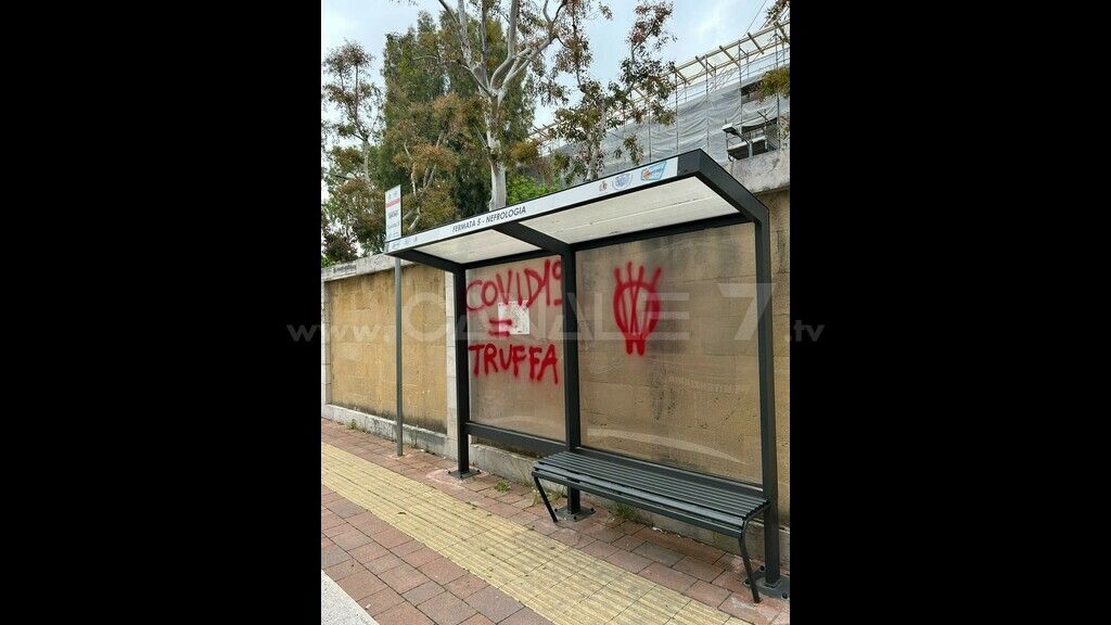 “Vax = morte”, "Malori improvvisi? Sono Vax uccisi", “Covid19=Truffa”. Questi alcuni degli slogan no vax che hanno deturpato numerose facciate delle cliniche del Policlinico di Bari, tra cui le malattie infettive, la nefrologia, una navetta del trasporto pubblico interno dell’Amtab, pensiline delle fermate e alcuni muri perimetrali. Tutte con vernice rossa, firmate con doppia "V" cerchiata.
