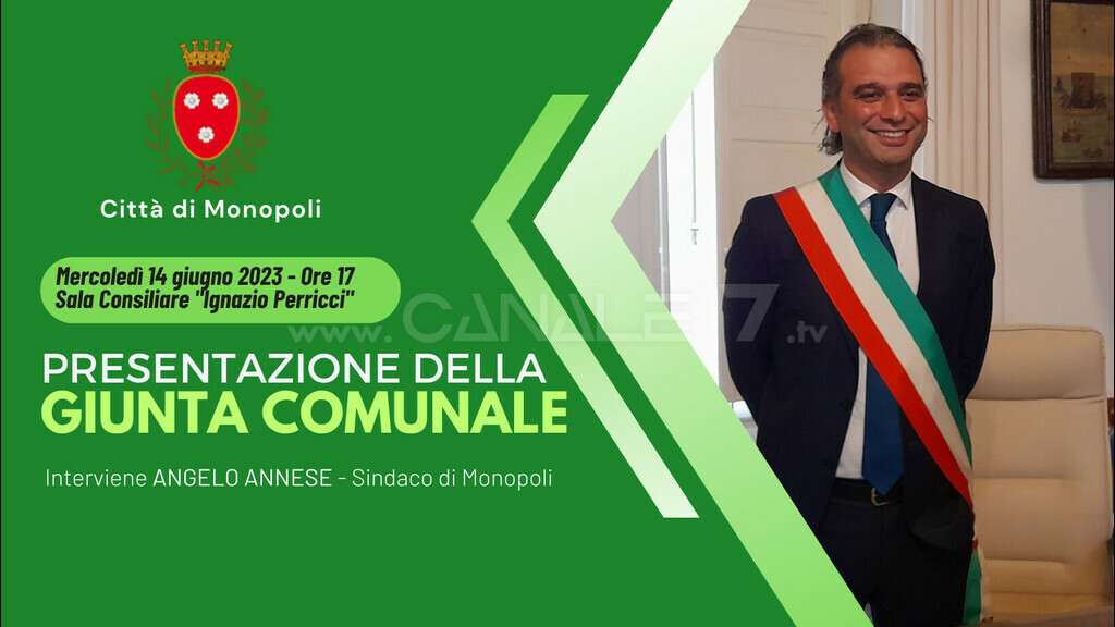 Oggi mercoledì 14 giugno alle ore 17.00 nella sala consiliare "Ignazio Perricci" di Palazzo di Città il Sindaco di Monopoli, Angelo Annese, presenterà alla stampa la nuova giunta comunale.