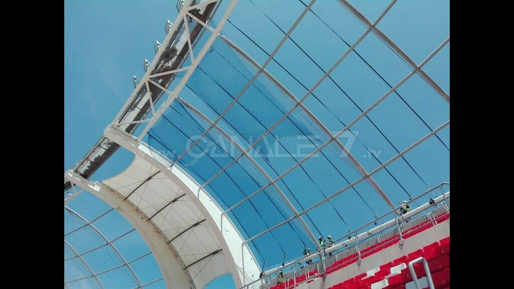 BARI - Sono cominciati questa mattina lunedì 19 giugno i lavori per il rifacimento della copertura dello stadio San Nicola nell’ambito delle attività di manutenzione straordinaria in capo al Comune: l’azienda aggiudicataria dell’appalto ha avviato le prime fasi di installazione delle reti di sicurezza e pre-assemblaggio dei profili in alluminio su collari inox. Domani procederà con la posa in opera dei profili in alluminio per poi passare all’installazione dei teli alla presenza della gru in cantiere nella giornata di mercoledì fino all’operazione del tensionamento dei teli e la saldatura delle flappe.