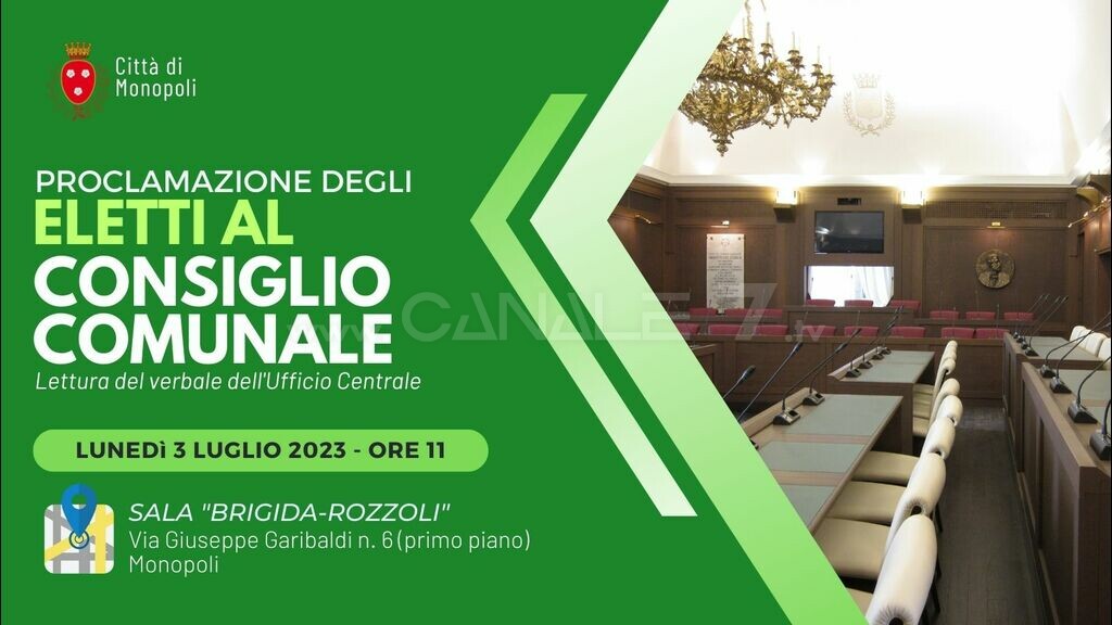 MONOPOLI - A conclusione dei lavori, in data 26 giugno 2023, l’Ufficio centrale Elettorale ha proceduto alla proclamazione dei Consiglieri Comunai eletti alle elezioni amministrative degli scorsi 14 e 15 maggio 2023.
