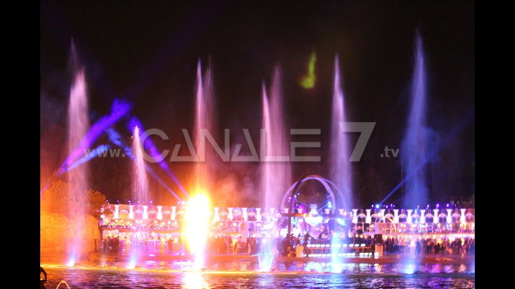 Ma la straordinarietà dell'evento è stata contrassegnata da alcuni momenti scenografici che hanno sbalordito gli invitati. Fontane di acqua e di fuoco con tanti giochi di luce hanno illuminato lo spazio di mare antistante Lido S. Stefano. Spettacolari, poi, le evoluzioni in mare del campione di flyboard Cristiano Perseu della scuderia Hero4mori. Con addosso una tuta a led ha mostrato tutta la sua abilità nella disciplina. A terra, invece, l'Orchestra sinfonica giovanile del Levante, diretta dal maestro Federico Morresi che ha proposto musica classica durante il banchetto ma che ha fatto poi scatenare gli ospiti con un repertorio pop. C'erano anche otto ballerini guidati dal coreografo Domenico Iannone.
