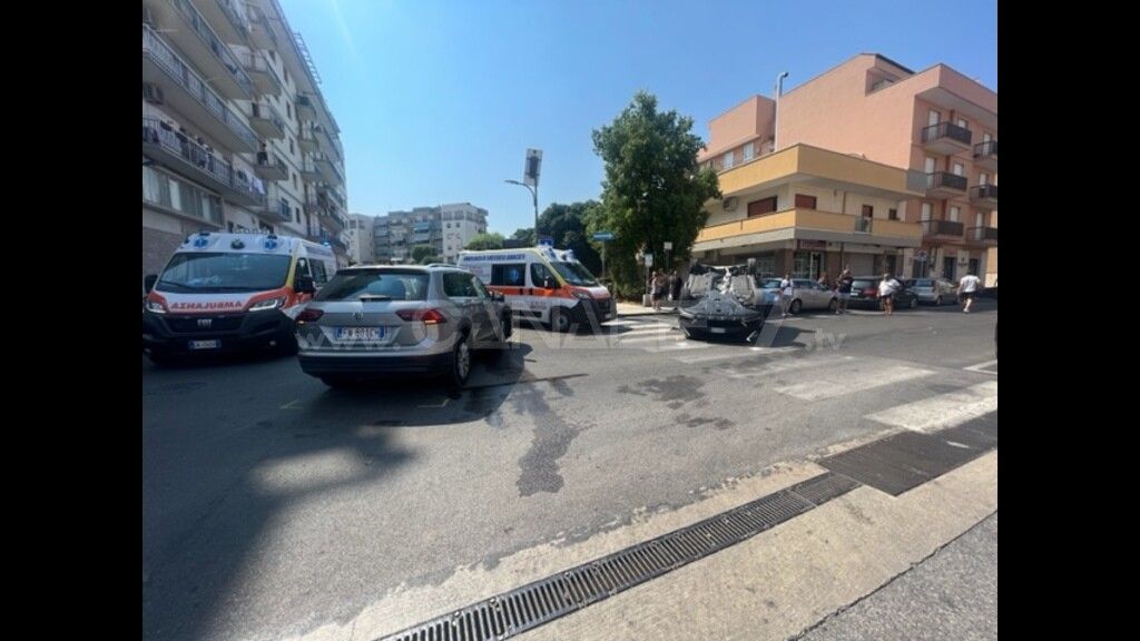 MONOPOLI - Ennesimo incidente stradale quello avvenuto nel primo pomeriggio di oggi, venerdì 25 agosto, in via Lepanto a Monopoli, all'intersezione con via Einstein e via Vico. A scontrarsi una Kia Sportage su cui viaggiava una famiglia di Agropoli (Salerno) e una Volkswagen Tiguan con a bordo una coppia di Isernia. Quest'ultima giungeva da via Einstein mentre la Kia percorreva via Lepanto. Uno scontro violentissimo tanto che la Kia Sportage si è ribaltata andando a finire su una Fiat Panda regolarmente parcheggiata. Si sono vissuti momenti di apprensione in quanto nel mezzo ribaltato vi erano due bambini in tenerissima età. Sul posto si sono portate due ambulanze e un'auto medica del 118 che hanno prestato soccorso in loco. Per fortuna non ci sono feriti gravi. I due giovani di Isernia hanno rifiutato di recarsi in ospedale avendo riportato solo qualche contusione mentre l'intera famiglia salernitana è stata comunque portata al "San Giacomo" per dei controlli più accurati. Sul luogo dell'incidente si sono portati anche i vigili del fuoco del distaccamento di Monopoli per mettere in sicurezza i mezzi. I rilievi sono stati curati da pattuglie della Polizia locale di Monopoli. Disagi si sono registrati alla viabilità.