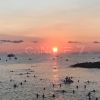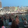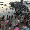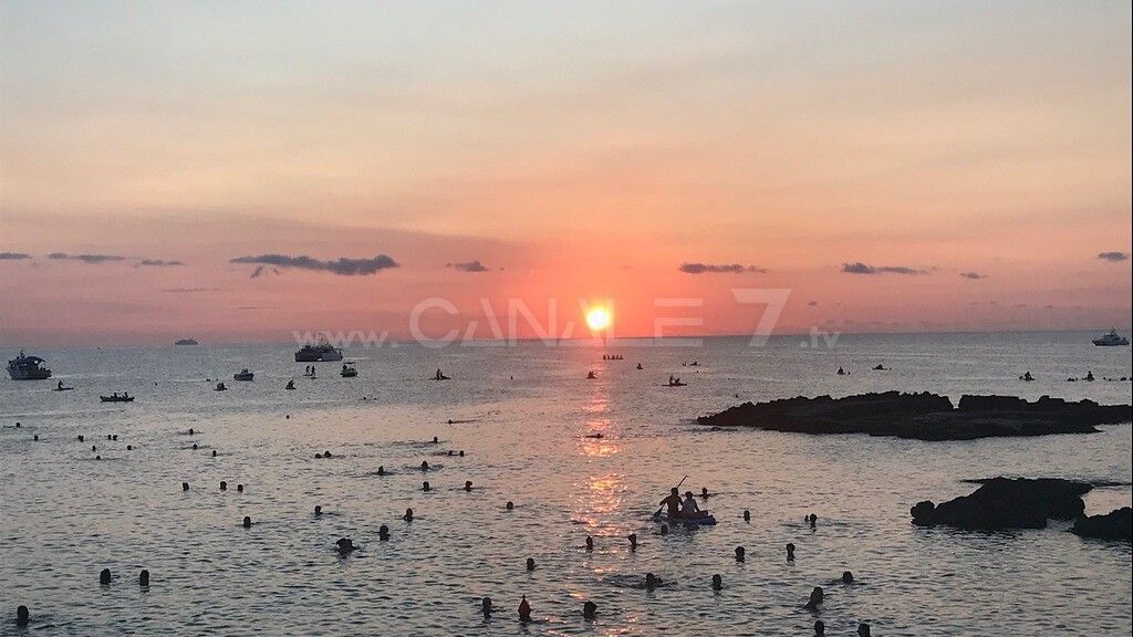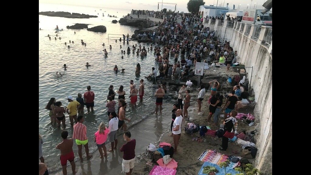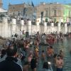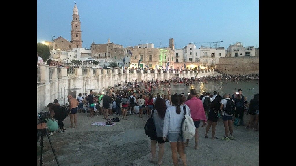 a salutarlo, tantissimi in acqua, altri assiepati nella splendida cornice della
