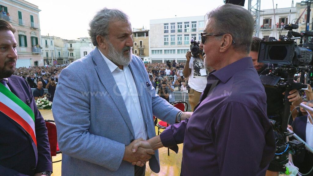 Stallone in piazza Plebiscito a Gioia del Colle. Entrambi hanno ricevuto la