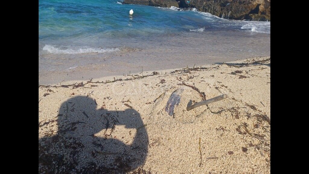 delfino spiaggiato sul bagnasciuga di Cala Monaci, nella zona a nord di