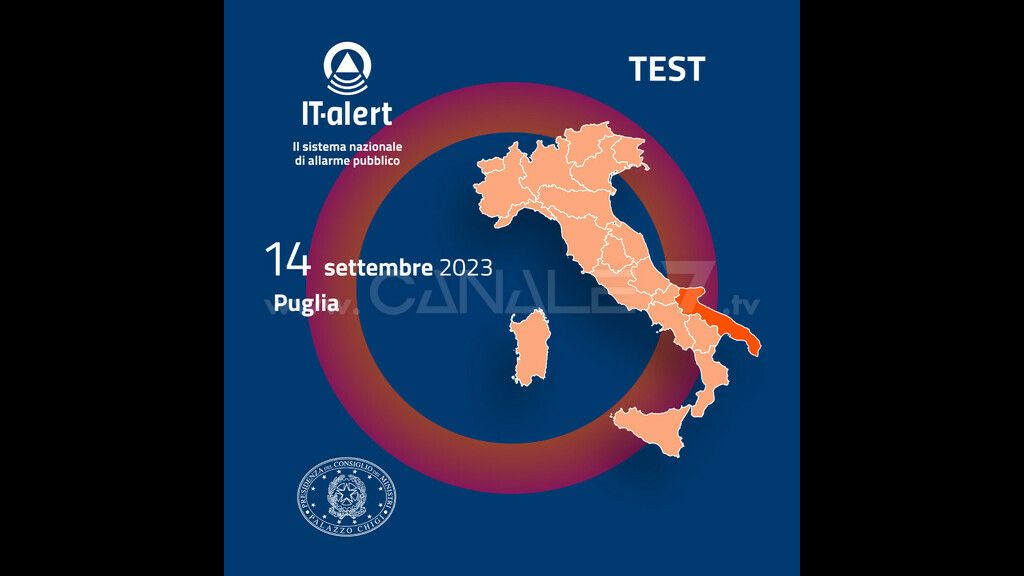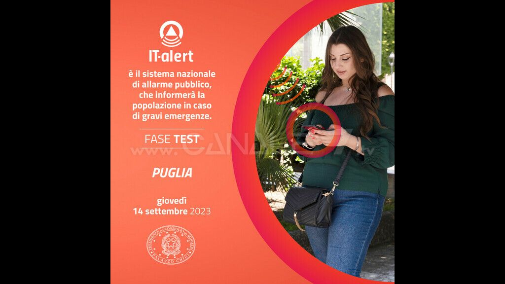 Si svolgerà alle 12 di domani 14 settembre in Puglia il test di It-Alert, il nuovo sistema di allarme pubblico nazionale attraverso i telefoni cellulari.Tutti i dispositivi agganciati a celle di telefonia mobile nella nostra regione suoneranno contemporaneamente, emettendo un suono distintivo diverso da quello delle notifiche a cui siamo abituati. La Regione spiega che "chi riceve il messaggio di test non ha nulla da temere, e non dovrà fare nulla tranne leggere il messaggio. L’invito per tutti, che abbiano ricevuto correttamente il messaggio o meno, è di andare sul sito it-alert.it rispondere al questionario: le risposte degli utenti infatti consentiranno di migliorare lo strumento". Il test sarà effettuato un po' alla volta da tutte le regioni italiane. Dopo la fase di sperimentazione, It-alert, sottolinea la Regione Puglia, "consentirà di informare direttamente la popolazione in caso di gravi emergenze imminenti o in corso, in particolare rispetto a sei casistiche di competenza del Servizio nazionale di protezione civile: in caso di maremoto (generato da un terremoto), collasso di una grande diga, attività vulcanica (per i vulcani Vesuvio, Campi Flegrei, Vulcano e Stromboli), incidenti nucleari o emergenze radiologiche, incidenti rilevanti in stabilimenti industriali o precipitazioni intense. È importante sottolineare che IT-alert non sostituirà le modalità di informazione e comunicazione già in uso a livello regionale e locale, ma andrà a integrarle".