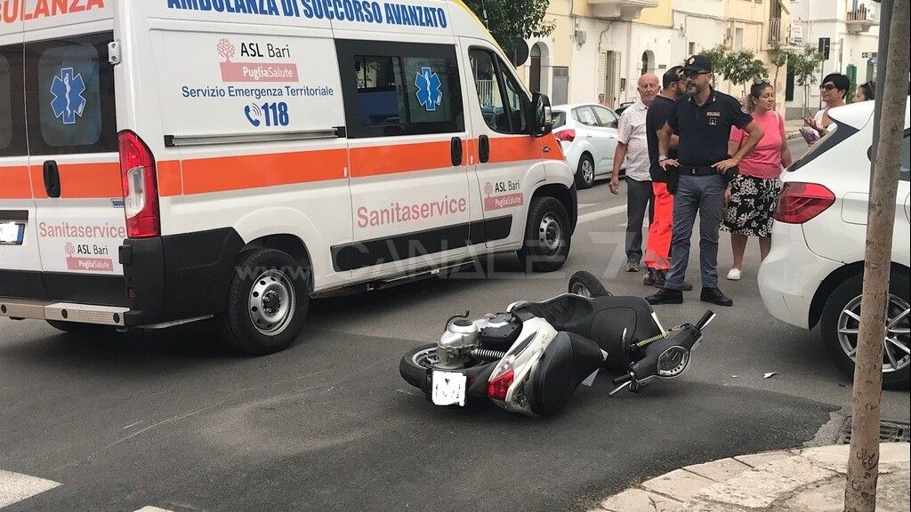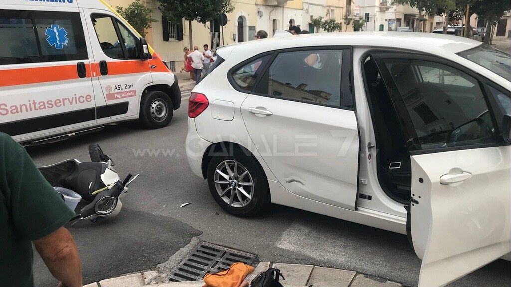 Monopoli in pieno centro scontro tra scooter e auto nel tardo pomeriggio di