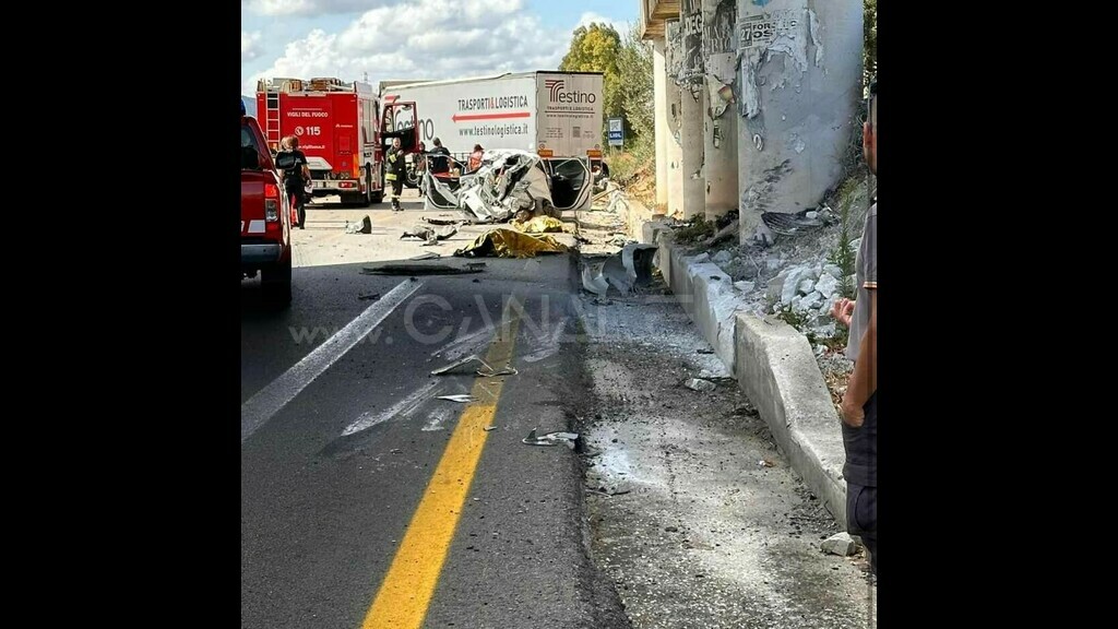 FASANO - È di due morti e un ferito grave il bilancio provvisorio di un tragico incidente avvenuto intorno alle 14 di oggi (lunedì 25 settembre) al km zero della statale 379 in direzione Bari alle porte di Fasano, all’altezza della uscita per Pezze di Greco. Nel sinistro sono rimasti coinvolti un autoarticolato di una società di traporti e logistica di Corato ed una autovettura, una Ford Fiesta travolta dal mezzo. Il ferito è stato trasportato presso l’ospedale Perrino di Brindisi. A perdere la vita un 50enne di Spinazzola, Angelo Rotondella, e un 55enne di Gioia del Colle, Domenico Paolo Catucci, entrambi occupanti della Ford Fiesta e tecnici pare impegnati in alcuni rilievi su di un cantiere stradale. Anche il ferito è un tecnico. Illeso l’autista del mezzo pesante. Sul posto, oltre ai colleghi dei tecnici deceduti, si sono portati Polizia stradale, 118 e Vigili del fuoco del distaccamento di Ostuni. Rallentamenti alla viabilità con il traffico che è stato deviato, per permettere i rilievi, sulle complanari.