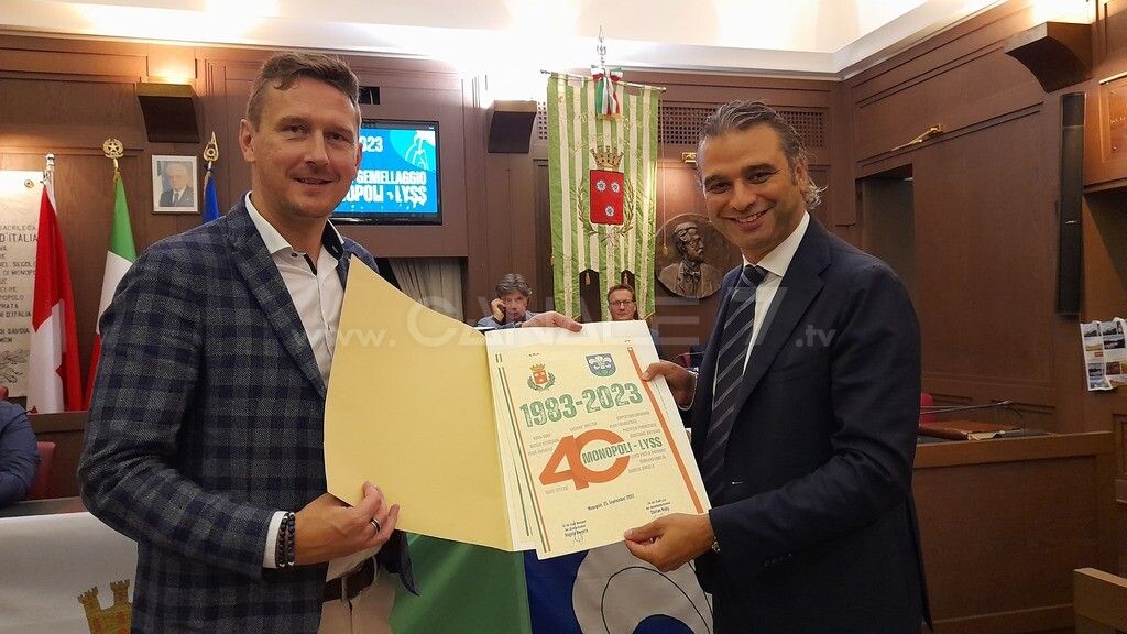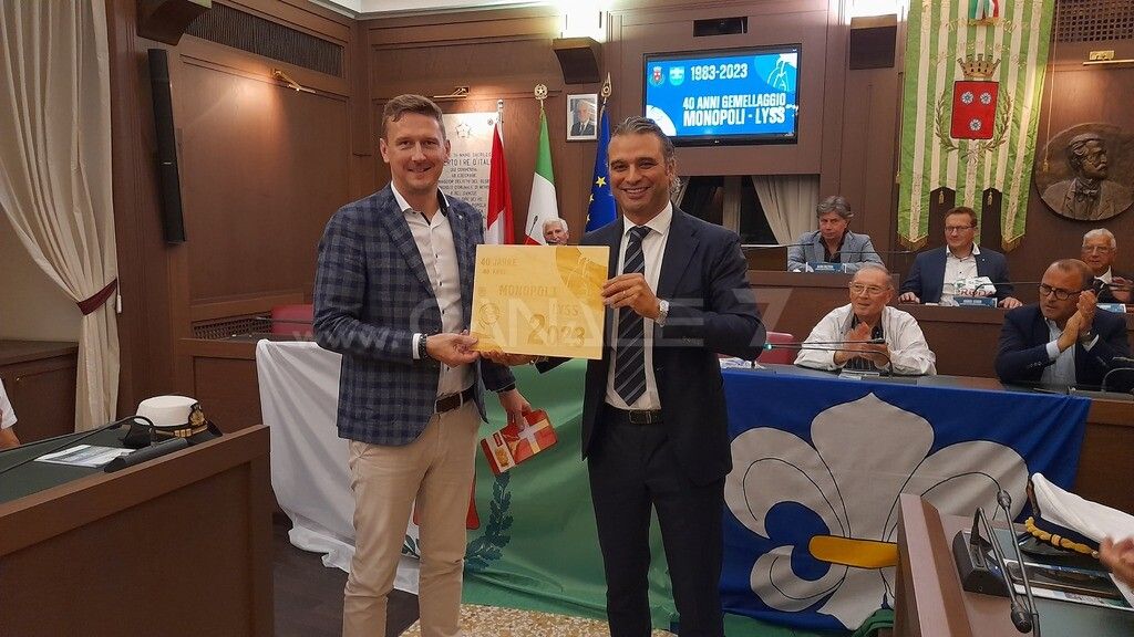 Quarant’anni dopo la Città di Monopoli e la Città svizzera di Lyss riconfermano simbolicamente il gemellaggio siglato il 24 settembre 1983. E lo hanno fatto nella stessa sala consiliare “Ignazio Perricci” dove quattro decenni fa il Sindaco Walter Laganà e il Sindaco di Lyss Max Gribi firmarono l’atto che ha unito per sempre le due comunità.
