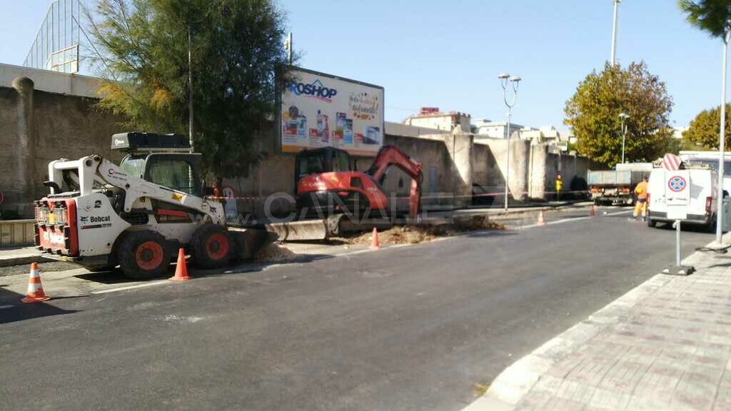 L'inconveniente causato accidentalmente da un escavatore in uso sul manto stradale.
