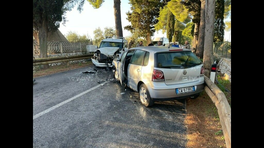 Scontro frontale questa mattina sulla provinciale che collega Polignano a Mare e Castellana Grotte. A scontrarsi un Fiat Doblò su cui viaggiavano quattro cittadini albanesi residenti a Triggianello che si stavano recando a lavoro in un’azienda agricola e una Volkswagen Polo condotta da un giovane polignanese, anch’esso diretto presso l’azienda agricola in cui è impiegato. L’urto è stato violentissimo. Sul posto si sono portate diverse ambulanze del 118 che hanno trasportato i feriti negli ospedali di Monopoli e Bari. Le condizioni non sono gravi ma tutti abbisognano di accurati accertamenti clinici. I vigili del fuoco del distaccamento di Monopoli hanno messo in sicurezza i mezzi e l’area. I rilievi di rito sono stati a cura dei carabinieri del nucleo operativo e radiomobile della Compagnia di Monopoli. La viabilità ha subito notevoli disagi anche perché la provinciale è stata bloccata data la presenza sulla carreggiata delle due auto. Il tutto è tornato alla normalità solo dopo la rimozione dei mezzi incidentati.