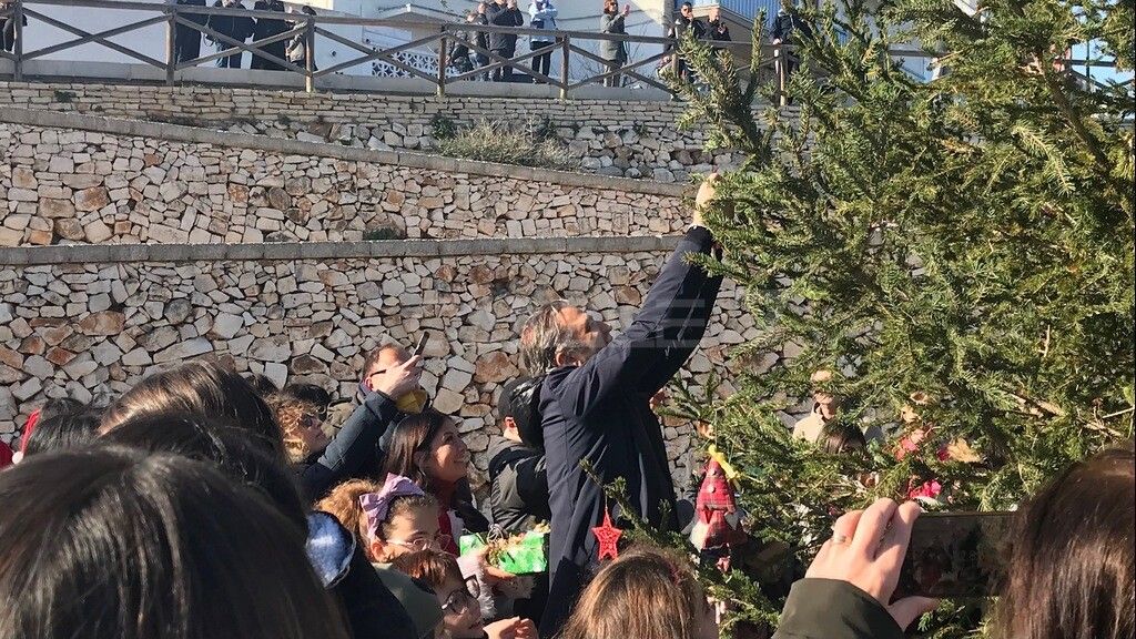 bambini e anziani.L'albero a Porto Rosso è stato inaugurato questa mattina 8 dicembre alla presenza del sindaco Angelo Annese e di altre autorità.