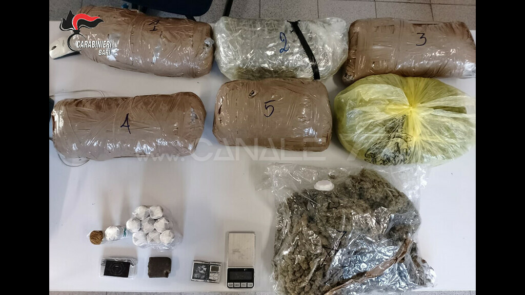 I Carabinieri della Tenenza di Mola di Bari, nei giorni scorsi, si sono recati presso l’abitazione della coppia per eseguire un ordine di espiazione pena detentiva emesso dalla Procura Generale delle Repubblica presso la Corte D’Appello di Bari nei confronti del trentanovenne. Quest’ultimo, alla vista dei militari operanti, ha tentato di fuggire dall’appartamento, venendo bloccato dai militari dell’Arma. Nella circostanza, a conclusione della perquisizione domiciliare, sono stati rinvenuti e sequestrati oltre 7,500 kg. di marijuana e oltre 1,100 kg. di hashish.