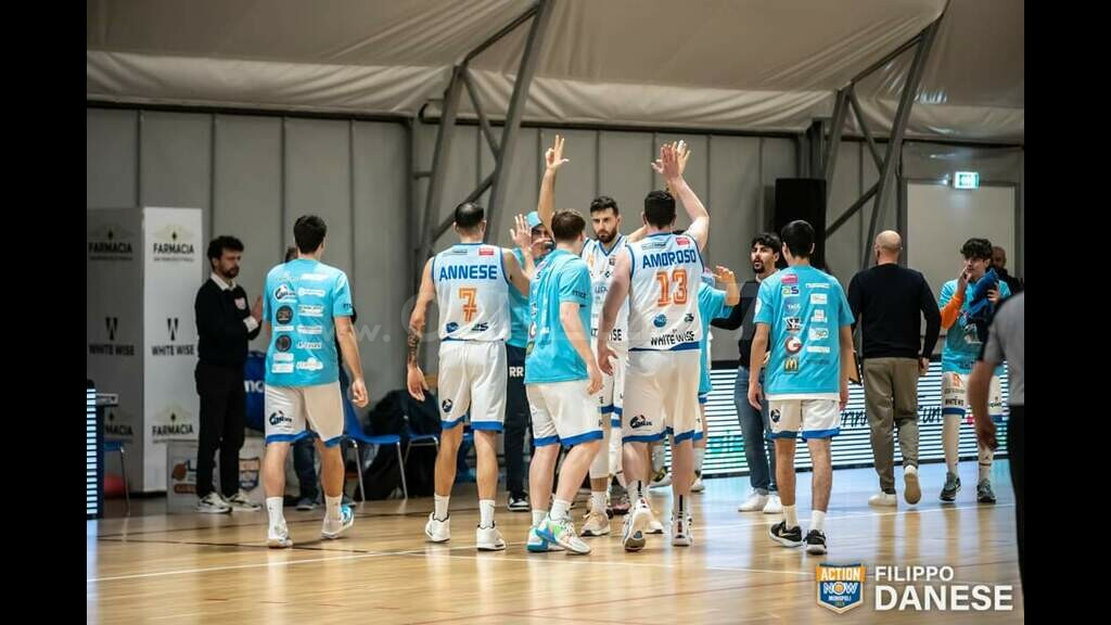 White Wise Basket Monopoli: Venga 10, Diomede n.e., Merlo 7, Annese Matteo 13, Laquintana 25, Annese Antonio n.e., Di Giuliomaria 8, Amoroso 8, Bini 12, Natalini 7.
