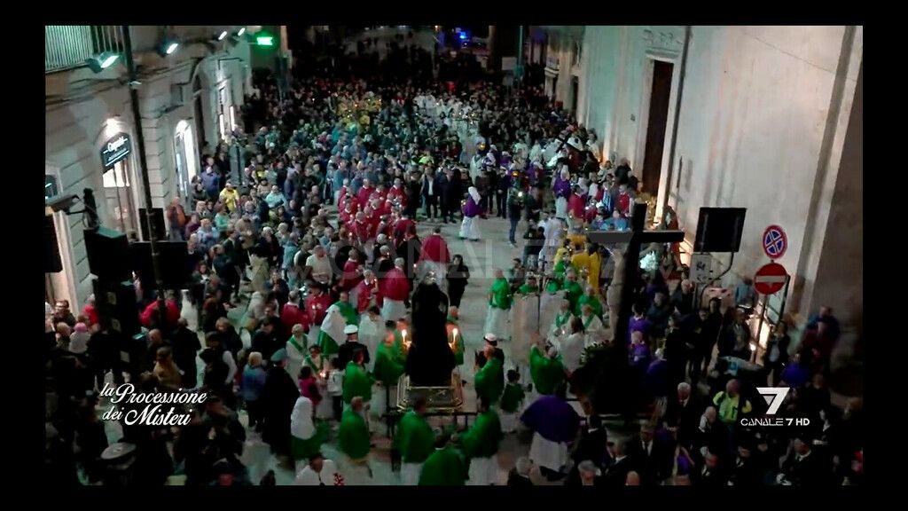 Il corteo quindi si è diretto verso Porta Vecchia, per le vie del centro storico e del murattiano, per poi giungere in piazza Vittorio Emanuele, infine i Misteri hanno fatto ritorno nella chiesa di San Francesco D’Assisi, dove sono custoditi tutto l’anno. Canale7 ha seguito con una trasmissione in diretta l’evento. Il commento sul significato del rito è stato affidato a Don Davide Garganese, direttore dell’Ufficio Liturgico Diocesano Conversano-Monopoli, nonché parroco di Sant’Antonio. Qualificato il commento su storia e tradizione locale attorno a quest’evento focale della Settimana Santa a Monopoli è stato affidato al prof. Achille Chillà, presidente della sezione locale dell’Associazione nazionale di Storia Patria.
