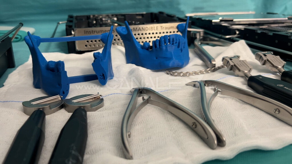 Ed è proprio in questa fase, che prevede il modellamento dell'osso e il suo trapianto nella sede da ricostruire, che la tecnologia aiuta. Durante la pianificazione dell’intervento, effettuata il giorno prima, dal confronto di tac e ricostruzioni 3D, vengono stampati i modelli tridimensionali delle fasi di resezione e ricostruzione. Ciò consente di abbreviare i tempi in sala con una ricostruzione molto più veloce e precisa delle strutture asportate, in questo caso la mandibola.