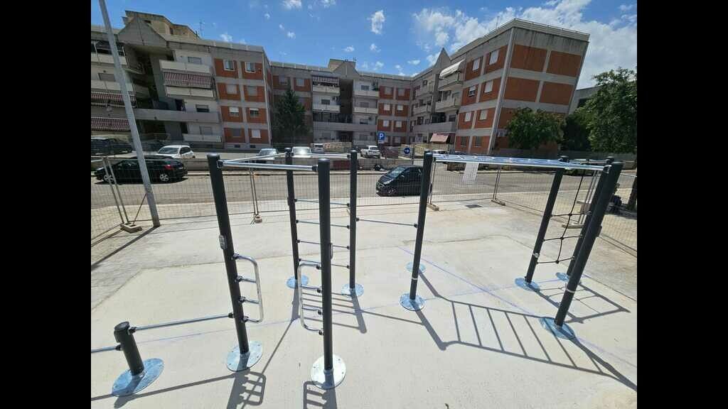 Completano l’area una struttura di street workout utilizzabile da 8 utenti contemporaneamente con installazione di pavimentazione antitrauma gialla e idonea ad essere utilizzata anche da soggetti diversamente abili e una panchina inclusiva (arredo inclusivo finalizzato alla sosta).