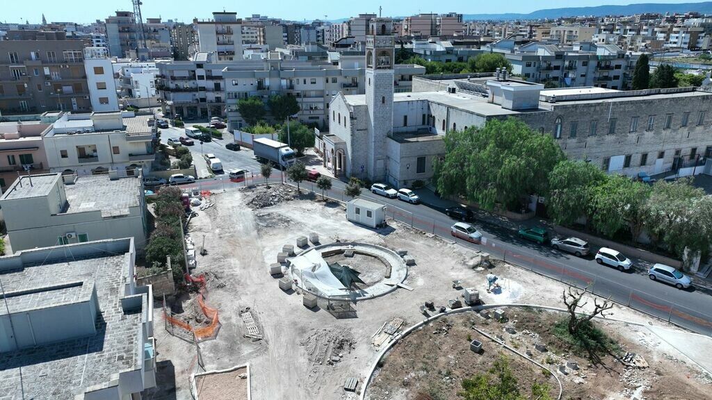 PIAZZA REGINA PACIS – Procede la realizzazione di una piazza antistante la chiesa di Regina Pacis. Contestualmente si sta procedendo all’ampliamento del tratto stradale, al fine di raccordare le due vie di scorrimento Via Vecchia Sant’Antonio e Via Grazia Deledda, con carreggiate ad un’unica corsia di percorrenza. Inoltre, il nuovo tratto stradale sarà completo dei pali per la pubblica illuminazione e dei marciapiedi, sarà realizzata una piazzetta ricreativa e saranno sistemati gli spazi a verdi ed effettuate opere di arredo urbano.
