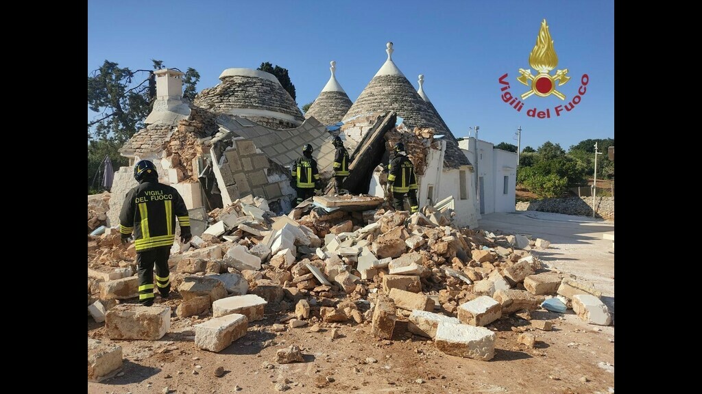 giunti sul luogo del disastro. Il trullo dove si è verificata l'esplosione si