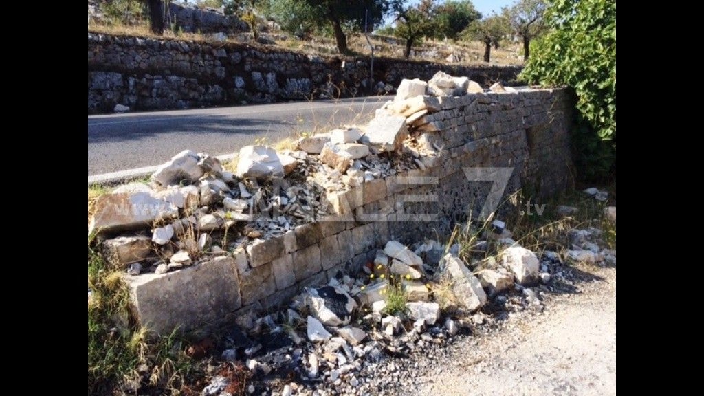 Sulla strada provinciale Monopoli-Castellana un tratto di muretto a secco è distrutto e minaccia la sicurezza
