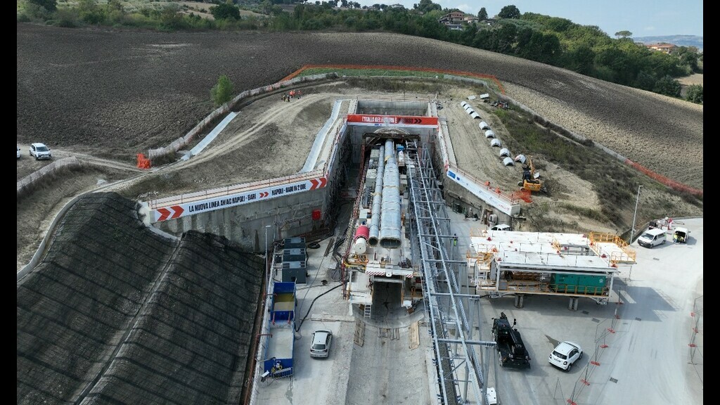 È terminato ieri giovedì 5 settembre 2024 lo scavo della galleria Grottaminarda, in provincia di Avellino, sul lotto Apice- Hirpinia: si tratta della prima opera della linea ferroviaria Napoli-Bari ad essere interamente realizzata mediante l’utilizzo di una talpa meccanizzata, la TBM Aurora. I lavori sul lotto Apice-Hirpinia sono stati affidati da Rete Ferroviria Italiana al Consorzio Hirpinia AV (Webuild), sotto la Direzione Lavori di Italferr, con un investimento di circa 628 milioni di euro.
