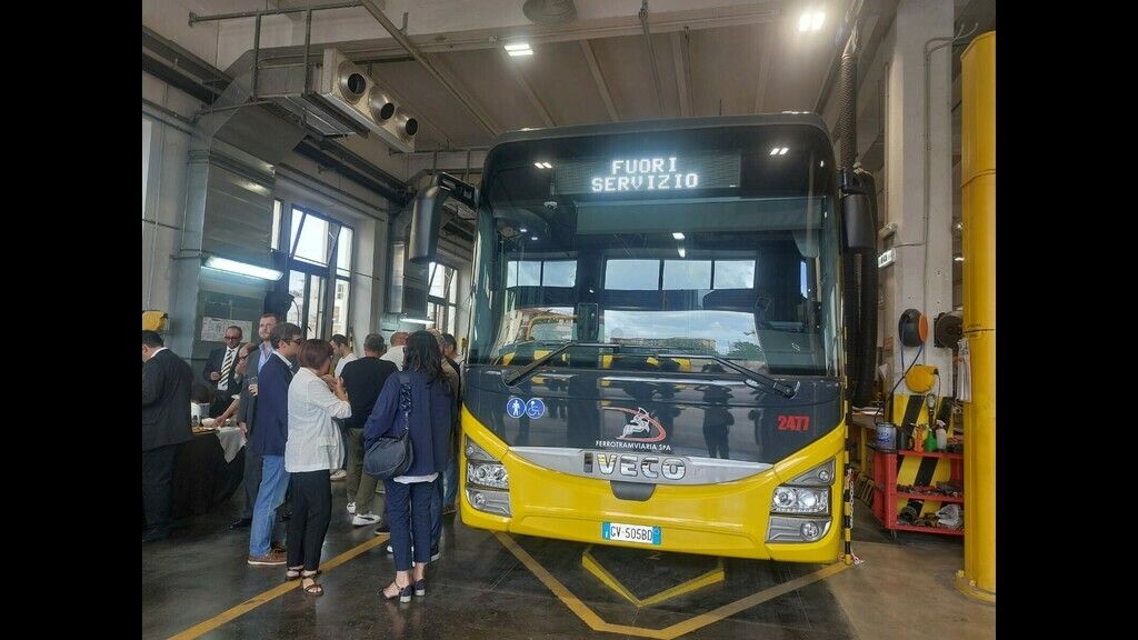 L’assessore regionale ai Trasporti e alla Mobilità sostenibile, Debora Ciliento, insieme al sindaco di Bitonto, Francesco Paolo Ricci, e all’assessore comunale alla Polizia locale, Cosimo Bonasia, ha visitato giovedì 12 settembre il deposito autobus di Ferrotramviaria, accolta dal direttore generale Trasporto Massimo Nitti, dal direttore Esercizio Autolinee Michele Ronchi e dal dirigente Produzione Autolinee Gaetano Pavoncelli, per inaugurare gli otto autobus Iveco Crossway, acquistati con finanziamento regionale pari a 1.530.000 euro, a valere sulle risorse del Piano Operativo Infrastrutture - POI FSC 2014-2020 ai sensi delle delibere CIPE n. 54/2016 e 98/2017, e con un contributo a carico della società di ulteriori 270.000 euro. Con l’immissione in servizio di questi nuovi otto autobus, Euro 6 e dotati di tecnologie di ultima generazione, la flotta su gomma di Ferrotramviaria si rinnova e abbassa la sua età media a circa 7,5 anni.