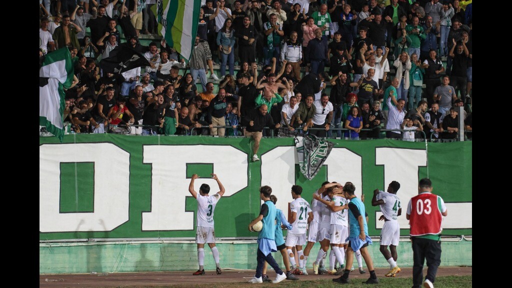 Il Monopoli batte il Benevento è capolista in solitario del campionato di serie C, Decide un gol di Viteritti nel finale, al termine di una partita sofferta, ma ancora una volta i padroni di casa dimostrano di avere i cosiddetti attributi. La partita. Come ampiamente previsto, Alberto Colombo schiera 10\11 della formazione che aveva iniziato a Cava, con la sola eccezione di De Risio al posto di Calvano. Prima del match, sul terreno di gioco sfilano circa 300 ragazzi tra under 15 e 17 del Monopoli e le società affiliate a quella biancoverde, vale a dire Accademia, Monospolis ed Esperia. Nel primo tempo è il Benevento a fare sostanzialmente la partita, con quattro attaccanti quattro a pressare alto accompagnati dal movimento di tutta la squadra. Il Monopoli, quasi di default, è costretto a difendersi senza riuscire a ripartire. Al 10’ bravo Pace a chiudere su Perlingieri, mentre due minuti dopo Angileri sbaglia l’appoggio (e non è l’unico nel corso del primo tempo), Vitale è bravo a chiudere su Lamesta. Al 16’ bravo Valenti a chiudere, a sua volta, su Simonetti. Il gioco del Benevento prevede un’organizzazione quasi maniacale, con gli esterni offensivi sempre altissimi a creare una linea di quattro attaccanti contro la quale non puoi concedere il minimo errore. Ma il Monopoli, conscio delle difficoltà, soffre ma non molla. Ne consegue che le ultime occasioni del primo tempo, nonostante la mole di gioco degli ospiti, giungono tutte su tiri da fuori, nell’ordine con Lamesta, Perlingieri e Oukkhada. Palloni pericolosi ma non troppo. Il Monopoli si vede in avanti proprio in chiusura con un corner di Bruschi respinto da Nunziante, Si va al riposo sullo 0-0. Ad inizio ripresa subito dentro Yeboah, fuori Bruschi. Chiaro l’intento di dare più profondità. Al 3’ ci prova Battocchio, destro a lato. Al 5’ Benevento pericoloso con Perlingieri: cross di Oukhadda, il centravanti spedisce a lato da buonissima posizione. All’8’ bravo Vitale a sventare un calcio di punizione di Lamesta. I biancoverdi replicano con Scipioni all’11’, ma la deviazione a volo è debole. Al 13’ è Battocchio a spaventare Nunziante dai 18 metri, sfera alta. Partita sempre aperta. Dentro Bulevardi al posto di Battocchio. Yeboah pericoloso al 22’: bello il diagonale dell’ex Verona che termina di poco a lato. Il Monopoli replica colpo su colpo e alza il baricentro. Dentro Yabre al posto di un esausto Valenti. Al 35’ biancoverdi in vantaggio: corner di Bulevardi, inzuccata vincente di capitan Viteritti che fa esplodere il “Veneziani”. Secondo gol in campionato per il capitano e primo gol in casa del Monopoli. Nel finale, al 50’ Scipioni e Yeboah hanno la palla del 2-0, chiude Nunziante. Finisce nel tripudio del “Veneziani”.