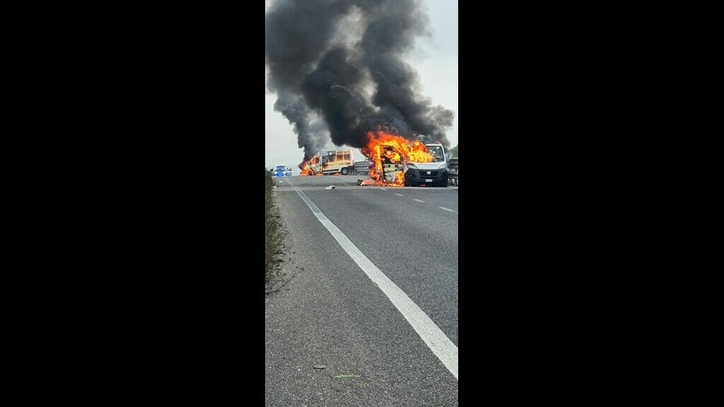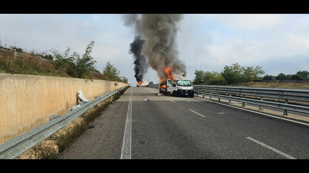 entrambi i sensi di marcia e dando poi alle fiamme il furgone dopo aver portato