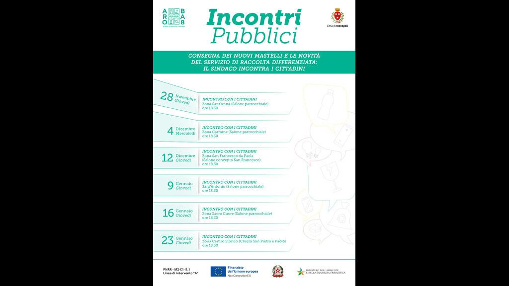 COMUNICATO - Continua la rivoluzione green a Monopoli dove il 2 dicembre 2024 partirà la distribuzione dei nuovi kit per la raccolta differenziata.