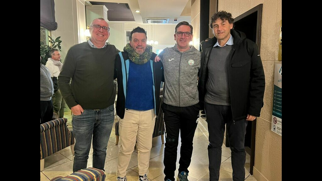 Bella sorpresa per il Monopoli: in serata, Beppe Scienza è andato a salutare squadra e dirigenza alla vigilia del match contro la Juventus Next Gen. Foto da libro "Cuore" con lo stesso Scienza, mister Colombo, Marcello Chiricallo e il presidente Francesco Rossiello.